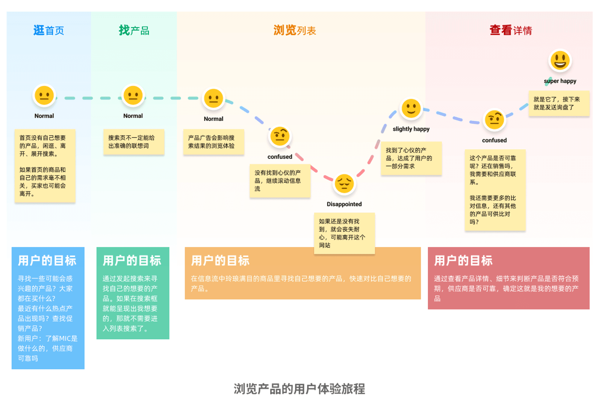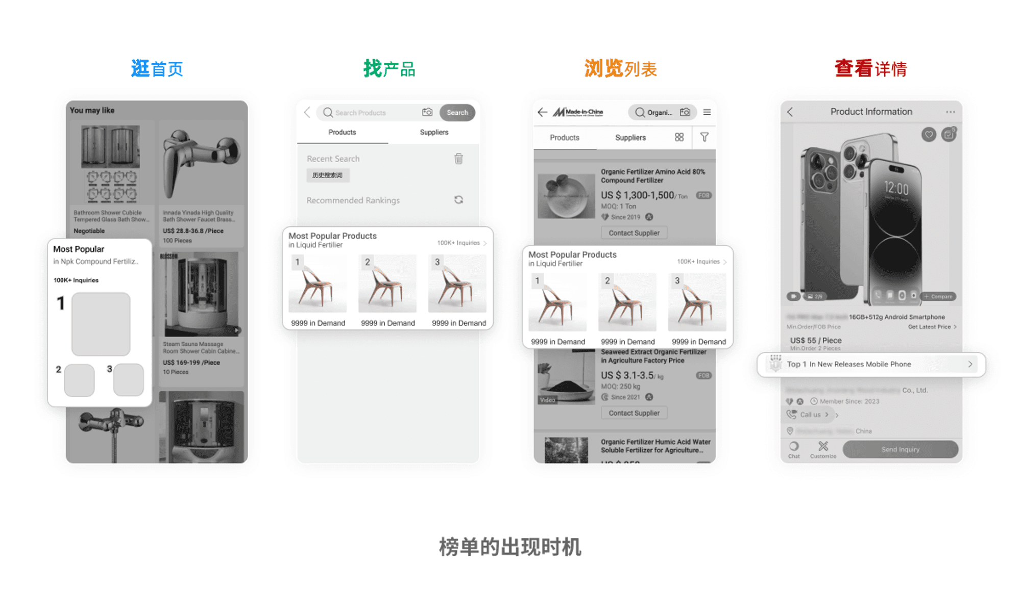 根据以上绘制的用户旅程地图,用户在逛首页、找产品、浏览列表、查看详情等环节中,都应该能看到榜单,吸引他们的注意力。这些环节,也正是买家反复查阅产品的关键流程。因此,我们的榜单应该及时出现在买家浏览时,为买家提供更多选品信息。