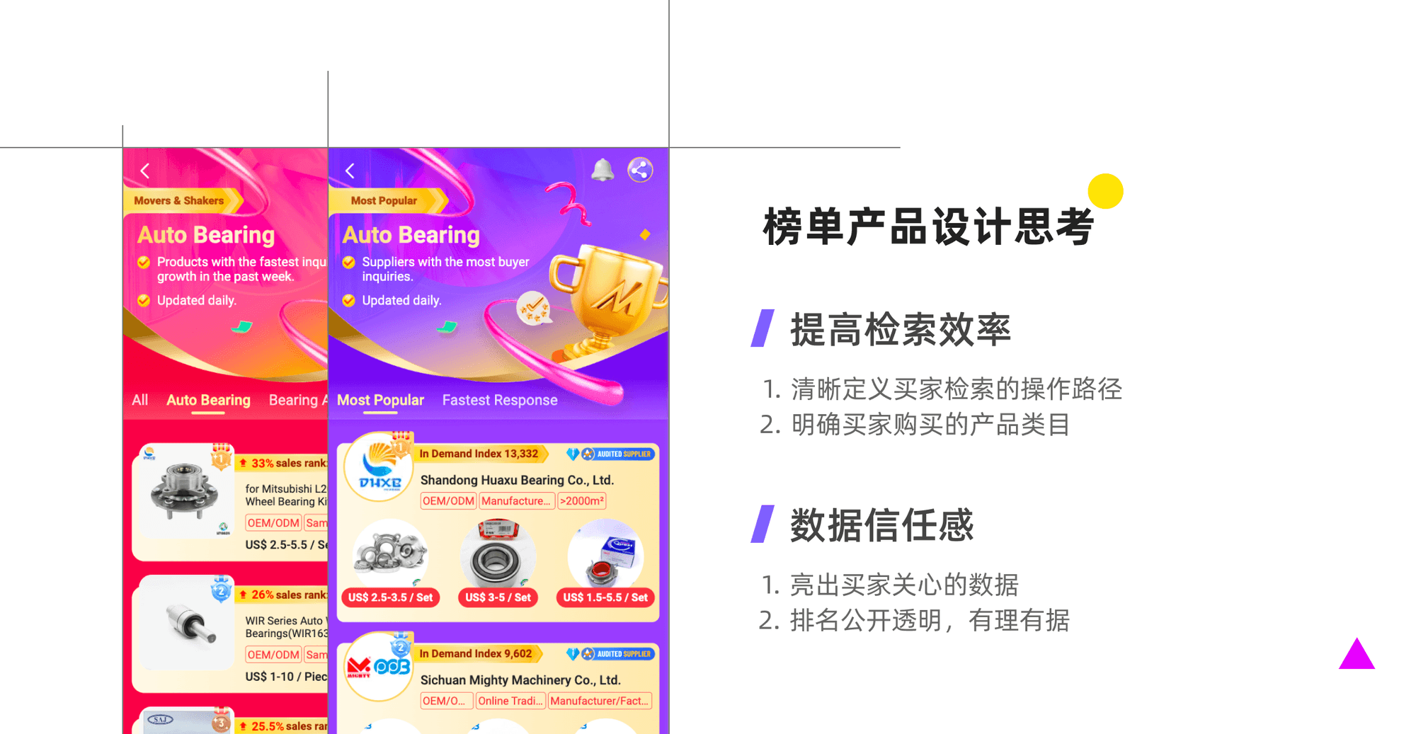站在买家用户侧考虑,榜单设计的成功,说明提高买家的产品检索效率是十分重要的。在信息大爆炸的时代,这一方面的设计优化,还有很多工作可以挖掘探索。