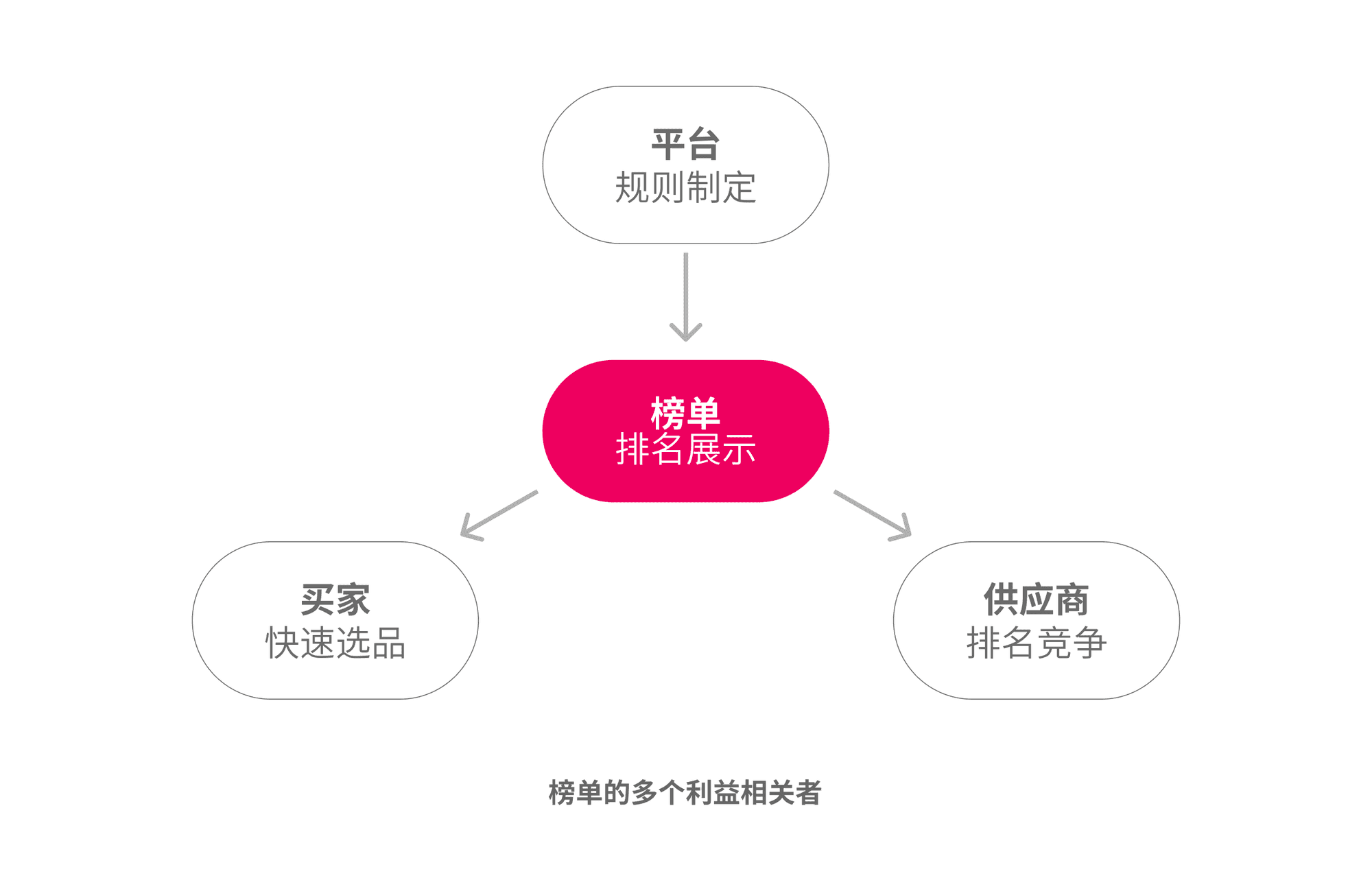 互联网上到处都可以看到各种各样的榜单。作为一种特殊的信息展示形式,榜单同时存在着多个利益相关者,他们之间相互制衡。作为产品设计者,我们应该和团队一起看到这一视角,不要一上来就开始琢磨设计细节。